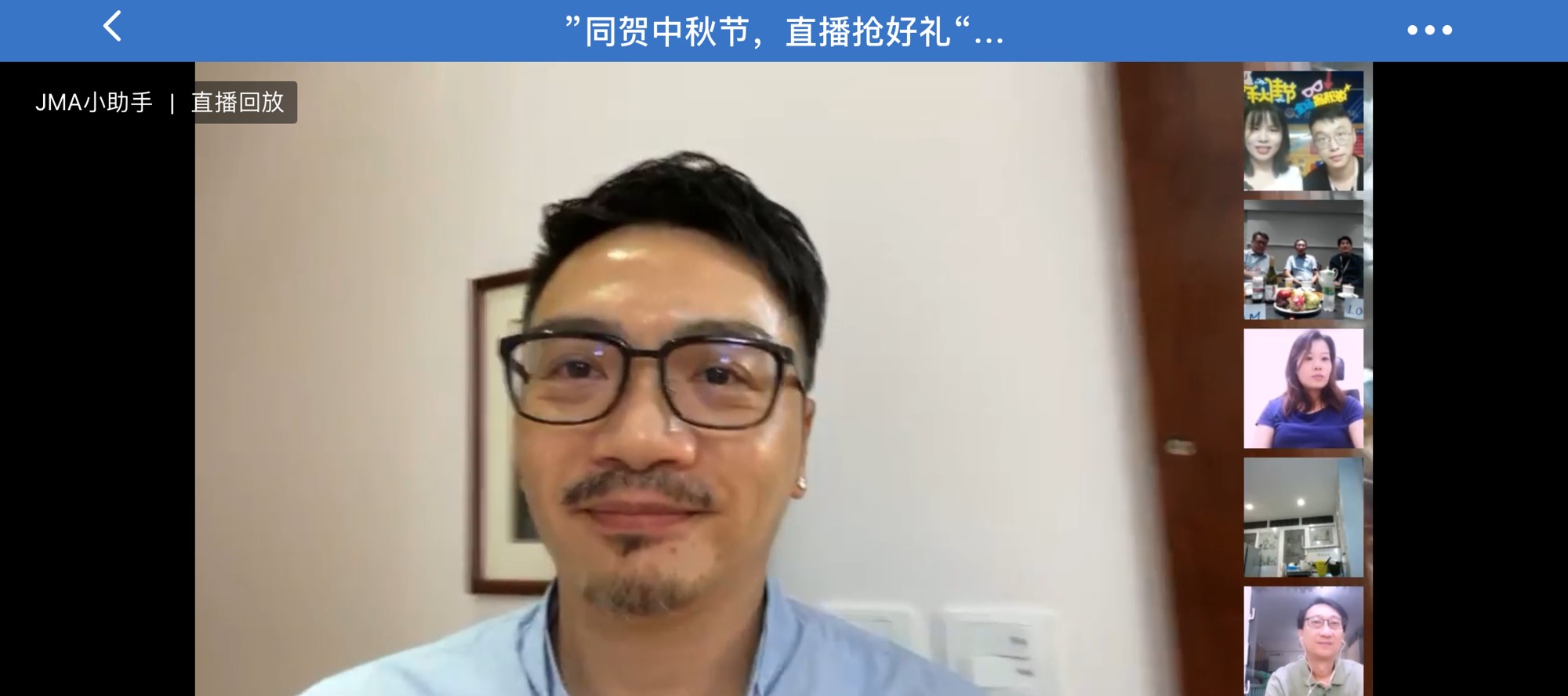 2020年中秋与国庆相遇,举国同庆,阖家团圆。这本是公司全体员工一年一度相聚的日子,受疫情影响,JMA各地的同事难以欢聚一堂,这能难倒我们吗?不,时代在变,环境在变,我们更要变,快速行动,积极部署,最终决定采用时下比较流行的方式——直播,来实现我们的中秋大团圆!无法亲临现场的管理层可以连线送祝福,全体同事则通过手机一起参与活动,感受团圆的氛围。