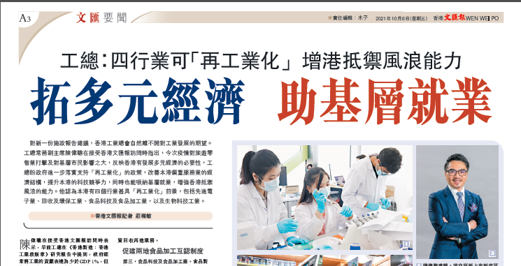 疫情反映香港有发展多元经济的必要性,希望政府进一步落实支持再工业化的政策